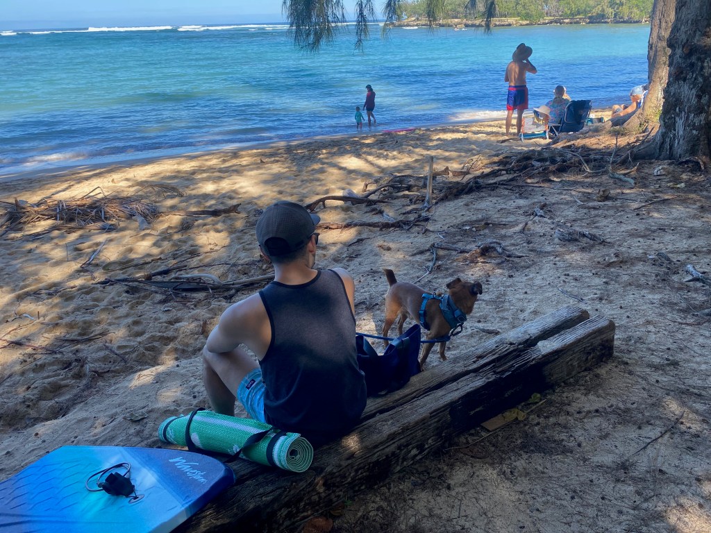 Dating the right person with your dog will reveal the human partner’s amazing intangible qualities. My boyfriend is thoughtful, caring man; and a confident, calm leader. My boyfriend has limits/ boundaries (Nalu is not allowed to eat blueberries on the white shag carpet, and the couch gets covered with a yoga towel whenever Nalu is over). My boyfriend is nurturing, gentle, fun/funny, and does not hesitate to man up as needed. Like the time he carried Nalu down from the top of the Kuliou’ou ridge trail stairs on his back when it got hella hot. Or watching Nalu when my dad passed away. My boyfriend has zero weird hang-ups around who is the dominant “alpha” in our little pack.